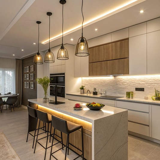 Lighting plays a huge role in how a kitchen looks and feels. The right lighting can instantly make the space appear brighter, larger, and more welcoming.